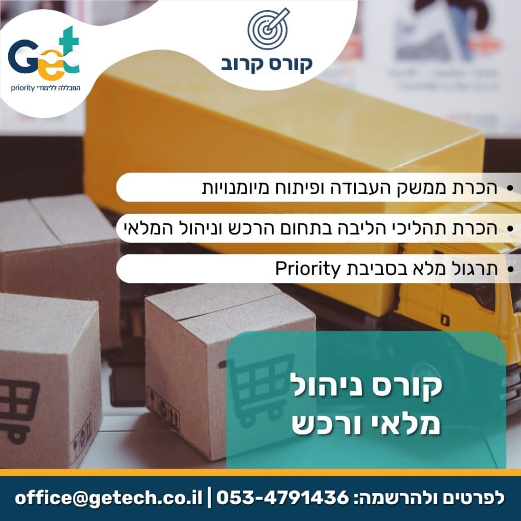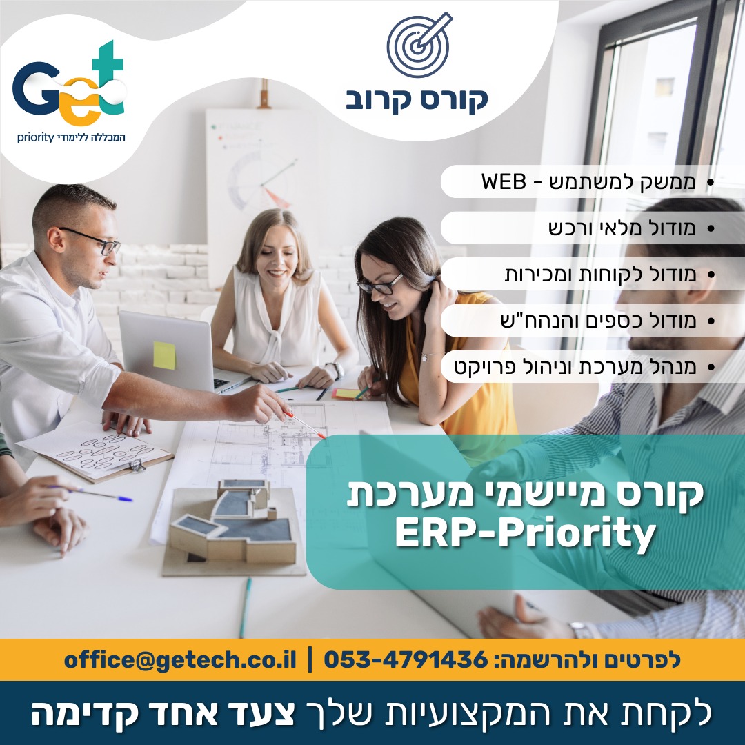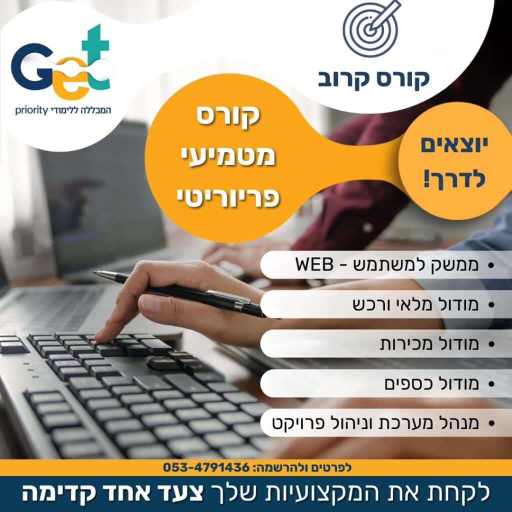 מכללת Get פריוריטי מציעה קורס מיישמי פריוריטי וגם קורסים נקודתיים