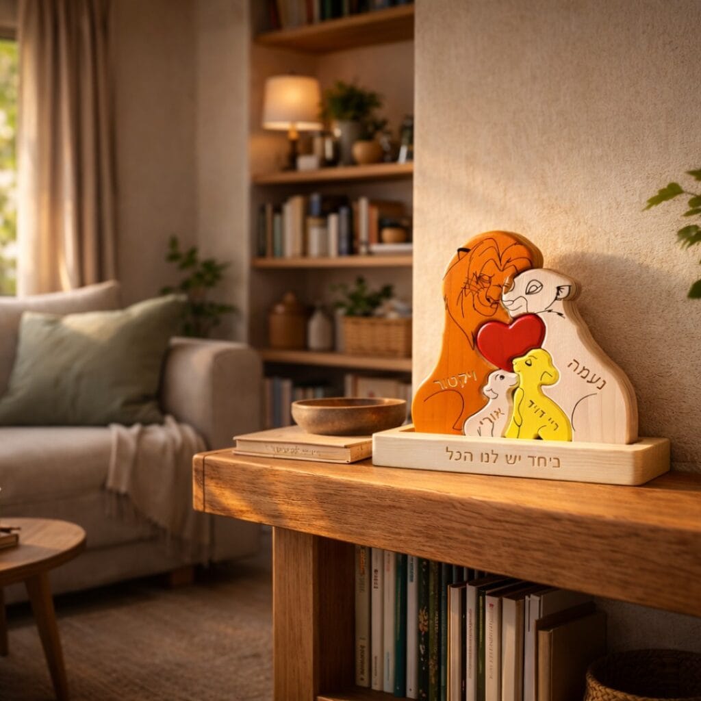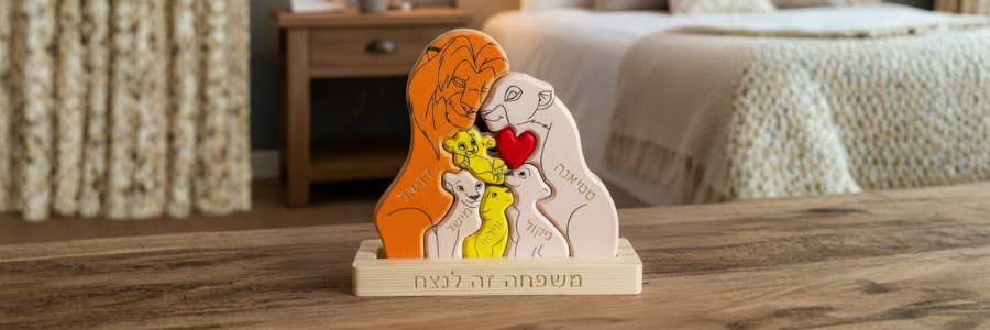 מגוון פאזלים משפחתיים בעיצוב אישי מיוחד ומרגש. חריטת שמות עמוקה והקדשה בבסיס העץ. שירות 10/10.